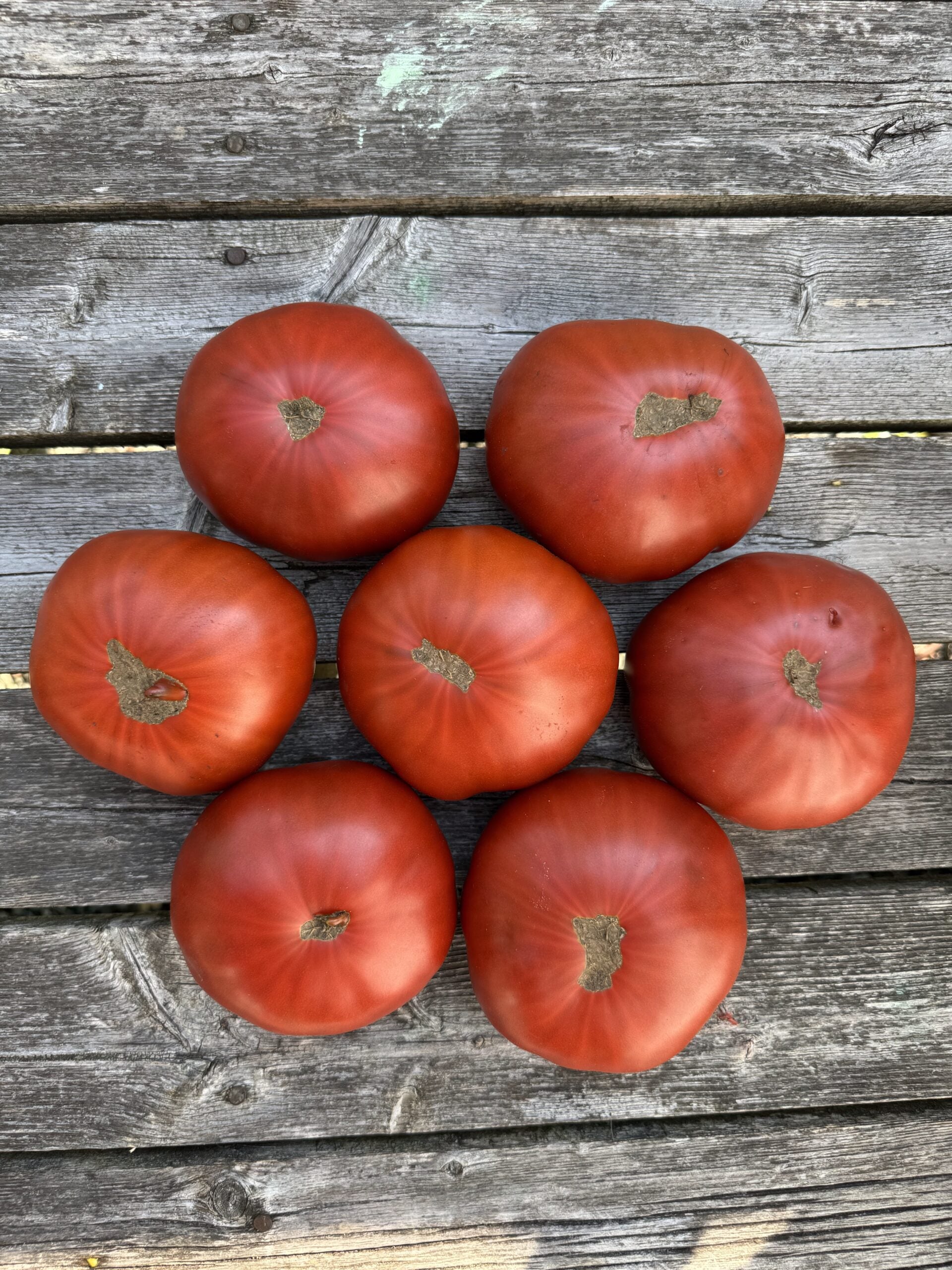 My favourite beefsteak tomato from the 2024 growing season. One slice covers a slice of homemade bread. Delicious, beautiful, rusty brown fruits hang on vining plants. 10% of your purchase goes to Karen Olivier, my cousin and breeder of this Canadian variety. Cowboy was named for her late father, Harold Borle. This one feels like a family heirloom already.
