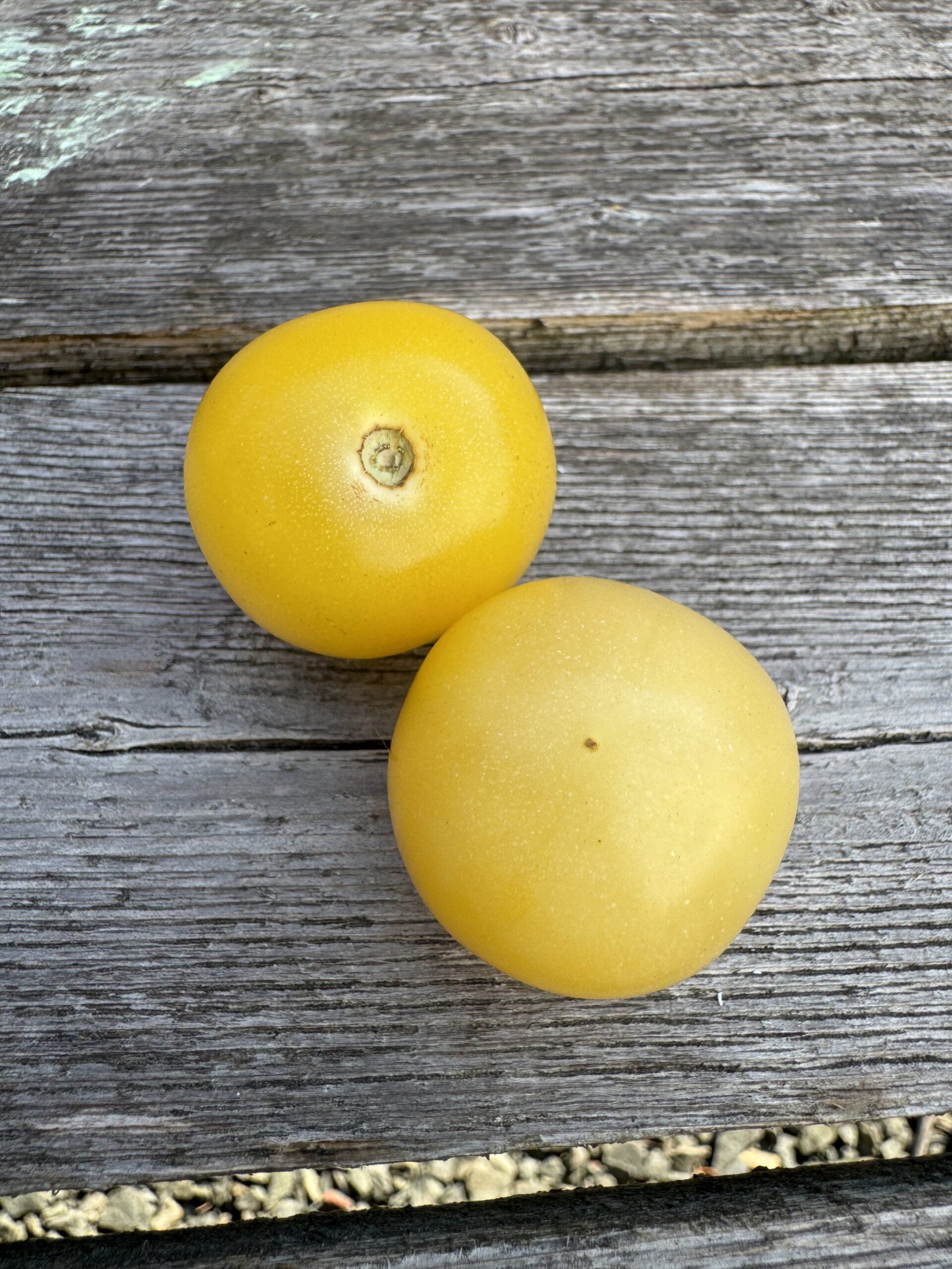 Pictured are Nightingale tomatoes. They are less yellow in real life. Photography is by Sow Local Seeds. Photo of tomatoes in a paper plate is by Karen Olivier.